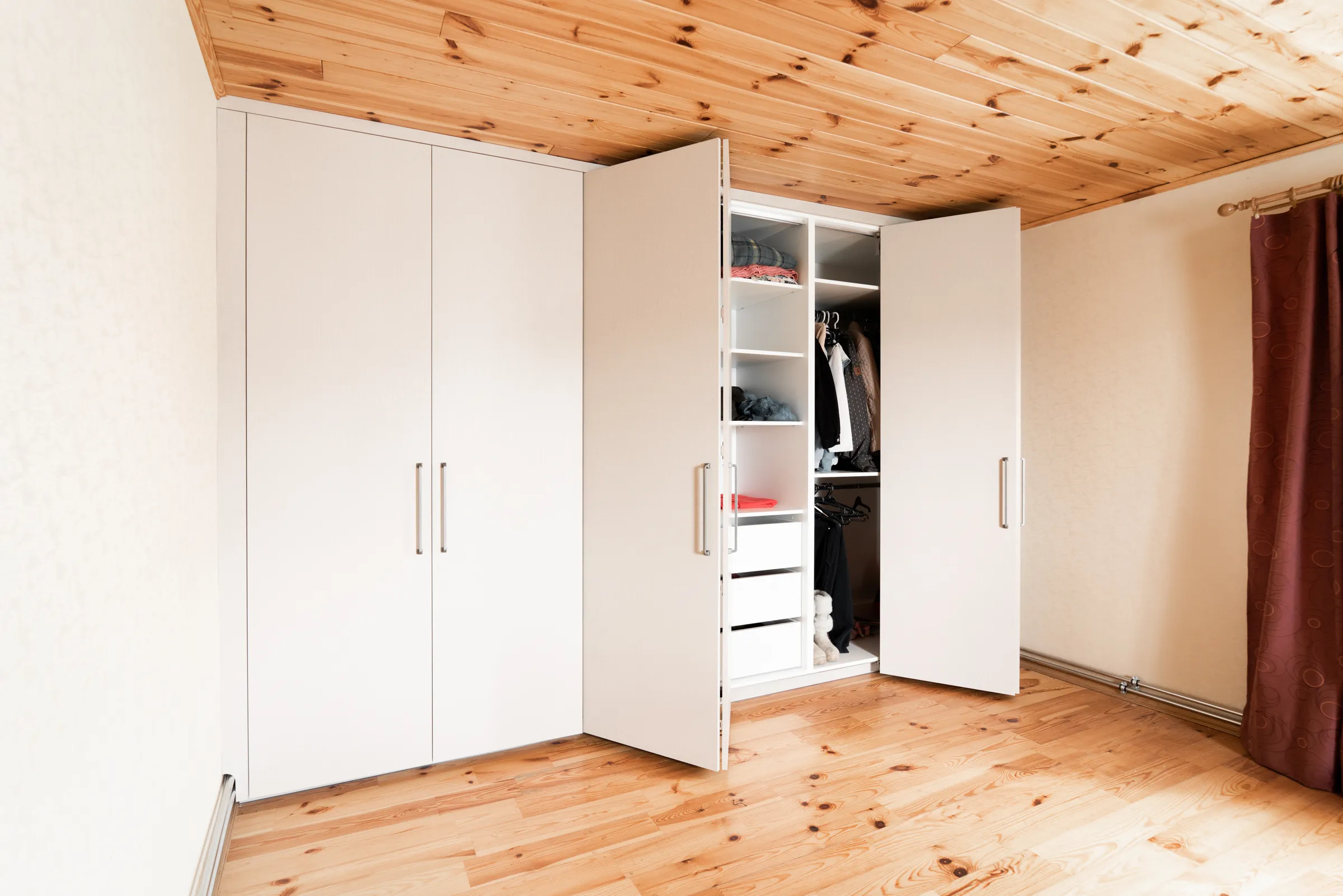 Стильный и функциональный шкаф со складными дверями в спальне.